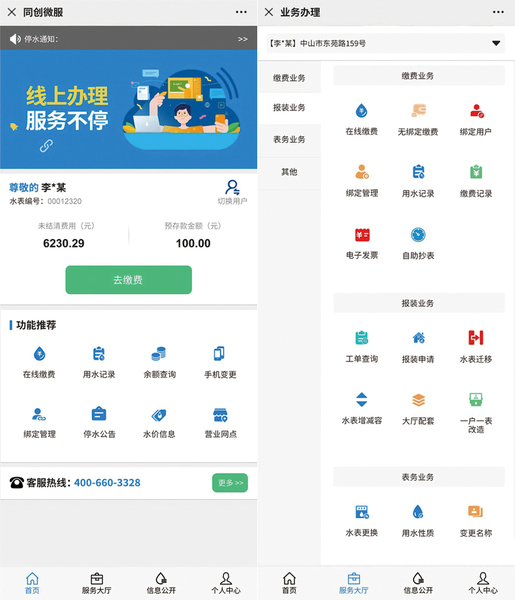為實現“數據多跑路、群眾少跑腿”,進一步深化用水服務改革,著力減環節、減時間、減資料、減跑動,提升用戶用水的便利度、滿意度和獲得感。同創科技創新“互聯網+供水新模式”,建立了“零跑腿業務” 系統,線下業務全部整合到了線上辦理,涵蓋個人、企事業單位報裝、繳費、發票、過戶等多項業務。通過內部全聯調工單流轉系統,實現線上完成業務流轉及反饋。真正實現服務用戶“零跑腿”,形成線上線下功能互補、相輔相成的供水服務新模式,讓廣大用戶足不出戶便可享受便捷快捷優質的服務!